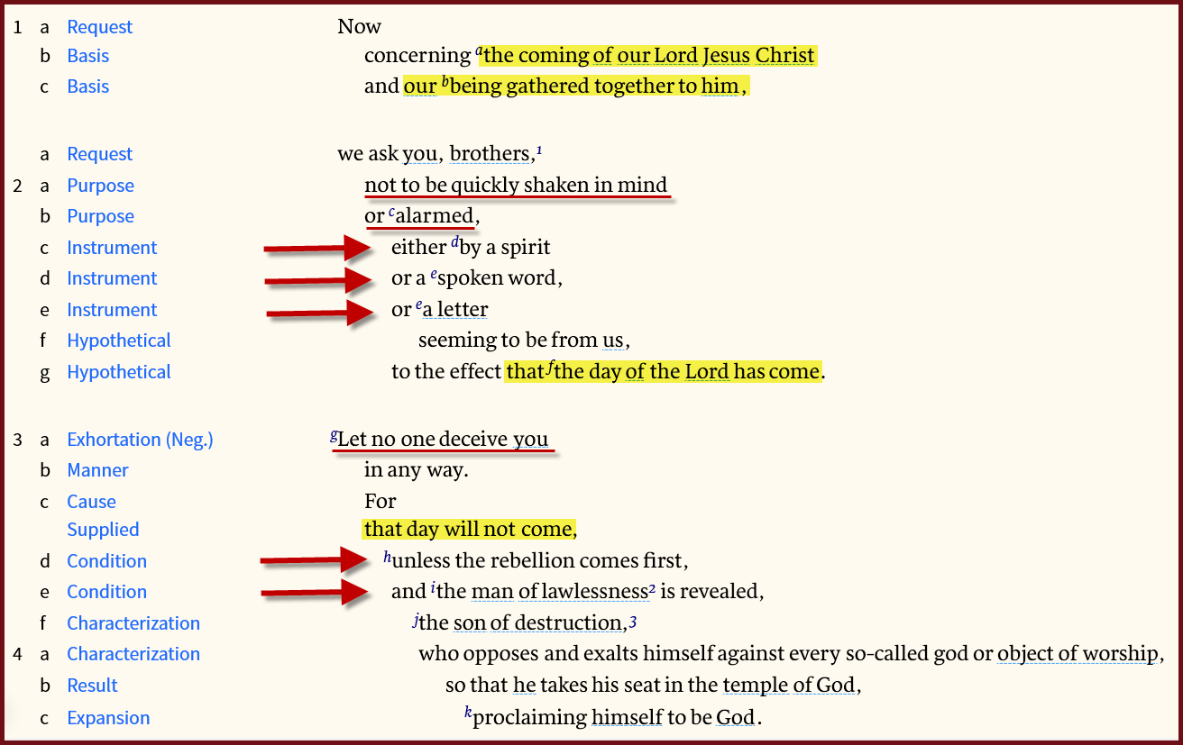 2 Thessalonians 2:1-3 “Now concerning the coming of our Lord Jesus Christ and our being gathered together to him, we ask you, brothers, 2 not to be quickly shaken in mind or alarmed, either by a spirit or a spoken word, or a letter seeming to be from us, to the effect that the day of the Lord has come. 3 Let no one deceive you in any way. For that day will not come, unless the rebellion comes first, and the man of lawlessness is revealed, the son of destruction.”